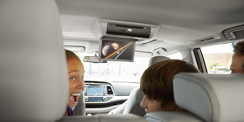 All trim levels come standard with front bucket seats and two rear row bench seats except where noted above. Higher trims have leather options available while lower trims are cloth. The Highlander comes standard with air conditioning in the front and rear with optional zone control in some trims. The Entune infotainment system has many features including an optional rear-seat Blu-ray Disc entertainment system.