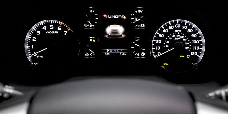 Every Tundra has a 5.7-liter V-8 engine that generates 381 horsepower, and it comes with a six-speed automatic transmission. Rear-wheel drive comes standard, but any model can have the part-time four-wheel drive system that Toyota offers as an option.