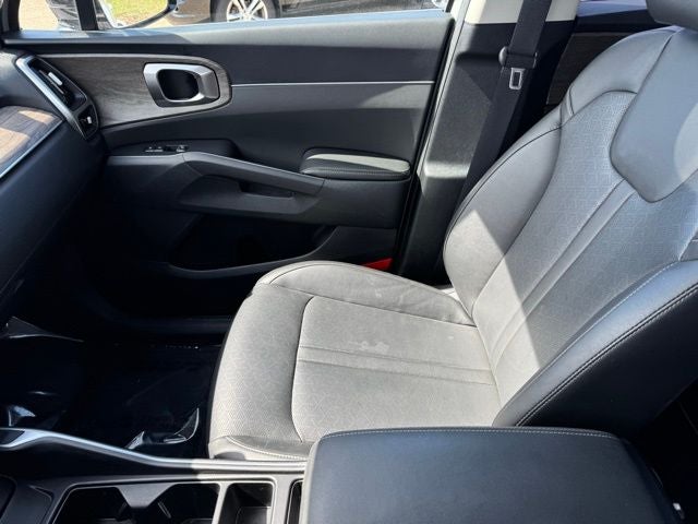Turn heads in this 2023 Kia Sorento X-Line EX AWD finished in striking Wolf Gray, a CARFAX One-Owner SUV that blends rugged capability with refined comfort and advanced technology. Equipped with AWD and impressive 22/27 City/Highway MPG, this Sorento delivers confidence in all conditions while offering premium features like SynTex artificial leather seats, heated front bucket seats, a power moonroof, and a versatile 3rd row split-bench for added passenger flexibility. Stay connected and entertained with Apple CarPlay, Android Auto, Bluetooth® hands-free, a touchscreen display, navigation system, SiriusXM radio, and steering wheel-mounted audio controls. Safety and convenience are front and center with collision warning system, blind-spot monitors, backup camera, rear parking sensors, auto high-beam headlights, and electronic stability control. Enjoy everyday practicality with a power liftgate, Smart Key with push-button start and remote start, multizone climate control, rear air conditioning, alloy wheels, and a smooth ride enhanced by 4-wheel disc brakes and speed-sensing steering. This well-equipped Kia Sorento X-Line EX AWD is the perfect combination of style, performance, and modern features for today's driver.