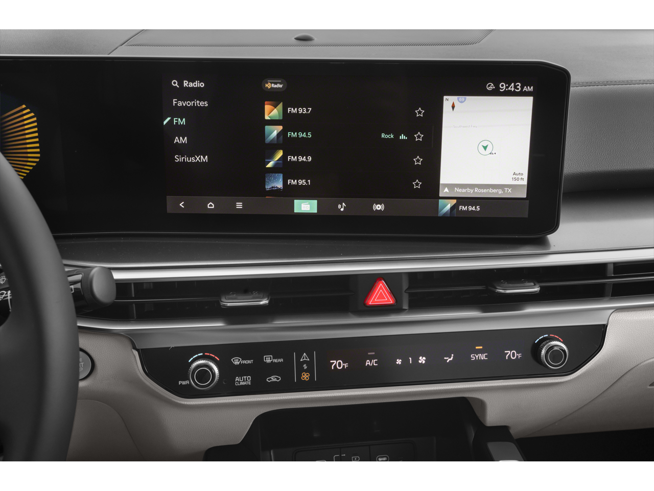- Radio: AM/FM Standard Sound System -inc: 12.3" ccNC lite touchscreen, navigation, HD Radio, Bluetooth® w/audio remote control, wireless Android Auto and wireless Apple CarPlay, voice recognition, Sirius XM, modem, Kia Connect, Wi-Fi hot spot, Over-The-Air Updates (OTA), 6 speakers and USB