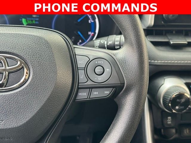 Efficiency meets everyday versatility in this 2025 Toyota RAV4 Hybrid XLE AWD, finished in Midnight Black Metallic and delivering an impressive 41/38 city/highway MPG. This CARFAX One-Owner, Clean CARFAX SUV is equipped with all-wheel drive and the XLE Package, offering advanced safety features like a Collision Warning System, Adaptive Cruise Control, Blind-Spot Monitors, Lane Keeping Assist, and a backup camera for added confidence on the road. Inside, enjoy modern connectivity with Apple CarPlay, Android Auto, Bluetooth® hands-free capability, and an AM/FM/XM audio system, all controlled through an intuitive touchscreen interface. Comfort is enhanced with dual-zone automatic climate control, fabric seat trim, a power driver seat, heated door mirrors, and a spacious interior designed for daily convenience. Additional highlights include Safety Connect with a 1-year trial, 17-inch silver aluminum alloy wheels, fully automatic headlights, remote keyless entry, and a full suite of stability and traction control systems, making this 2025 Toyota RAV4 Hybrid XLE AWD a well-rounded, fuel-efficient SUV built for reliability and modern driving needs.